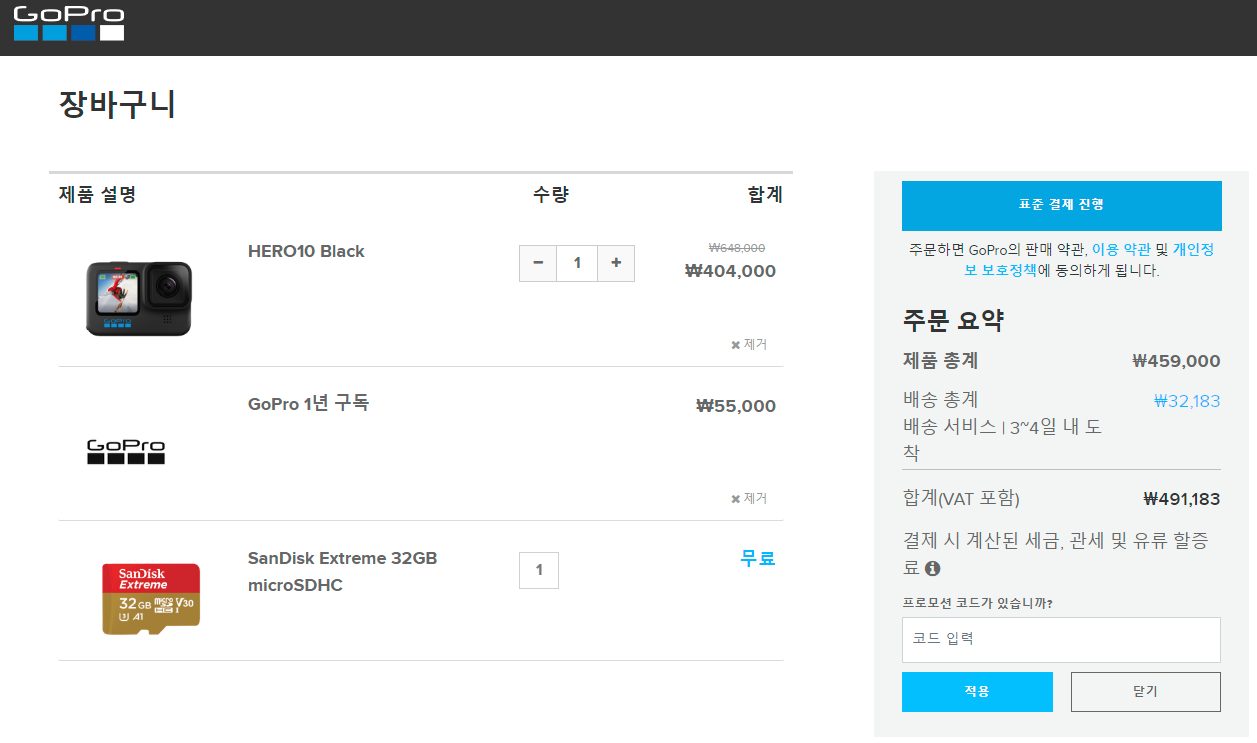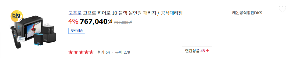 단품은 고프로 공홈행사가격도 좋은 듯 합니다.