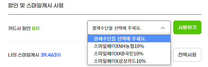 농협카드, KB국민카드, 삼성카드가 있는 분들은 10%지만 5만원 추가할인가능합니다.