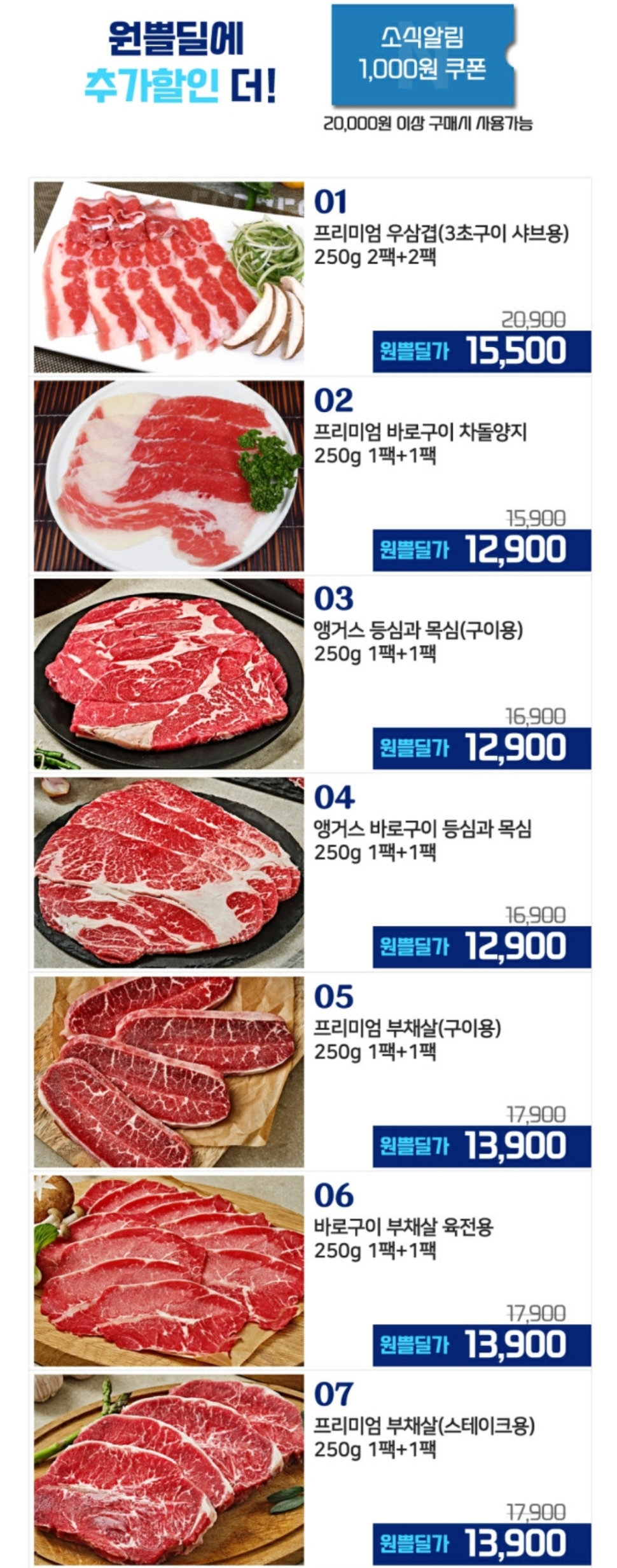 카테고리 없음 우삼겹 1kg (250g 2팩+2팩) 14,500원 by "!!" 2022. 8. 25. 워낙에 소고기를 좋아하지만 집에서는 스테이크굽기가 여간 어렵지 않아서 차선으로 즐겨먹는 우삼겹인데 딜떴습니다. 약간 상시딜 같은 느낌은 있지만 가성비가 매우 우수합니다. 250g 포장으로 먹기도 편하고 맛도 꽤 괜찮은 편입니다. 누리푸드 우삼겹 위 이미지를 클릭하면 누리 푸드 스마트 스토어로 연결됩니다. 원쁠딜 제품구성 1번, 2번 먹어봤는데 둘 다 맛있었어요~ 가성비는 1번이 최고! 공유하기 게시글 관리 IT & 최저가 댓글