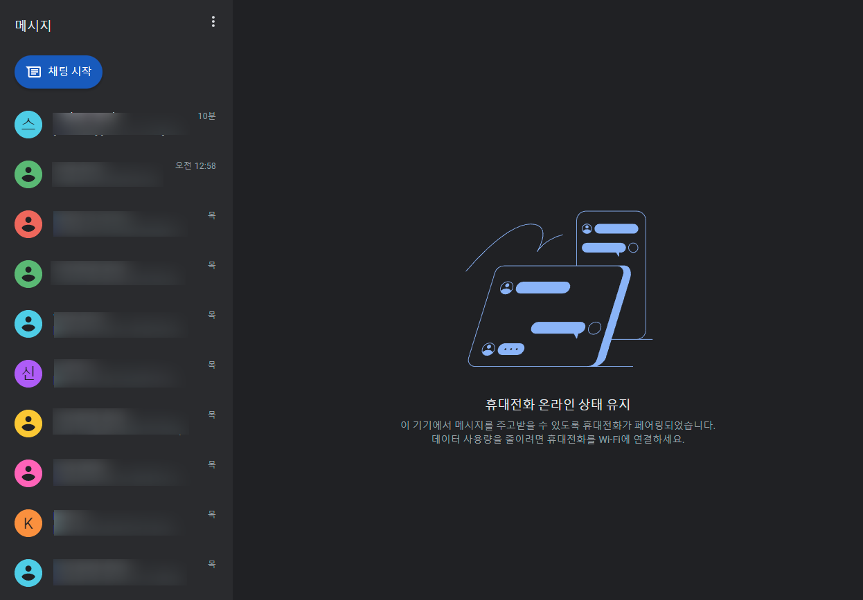 위 과정을 완료하면 스마트폰의 문자가 연동되어 보여집니다.